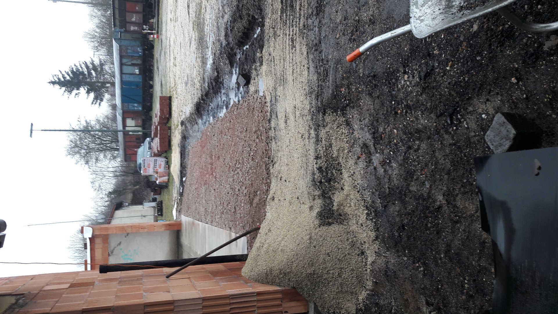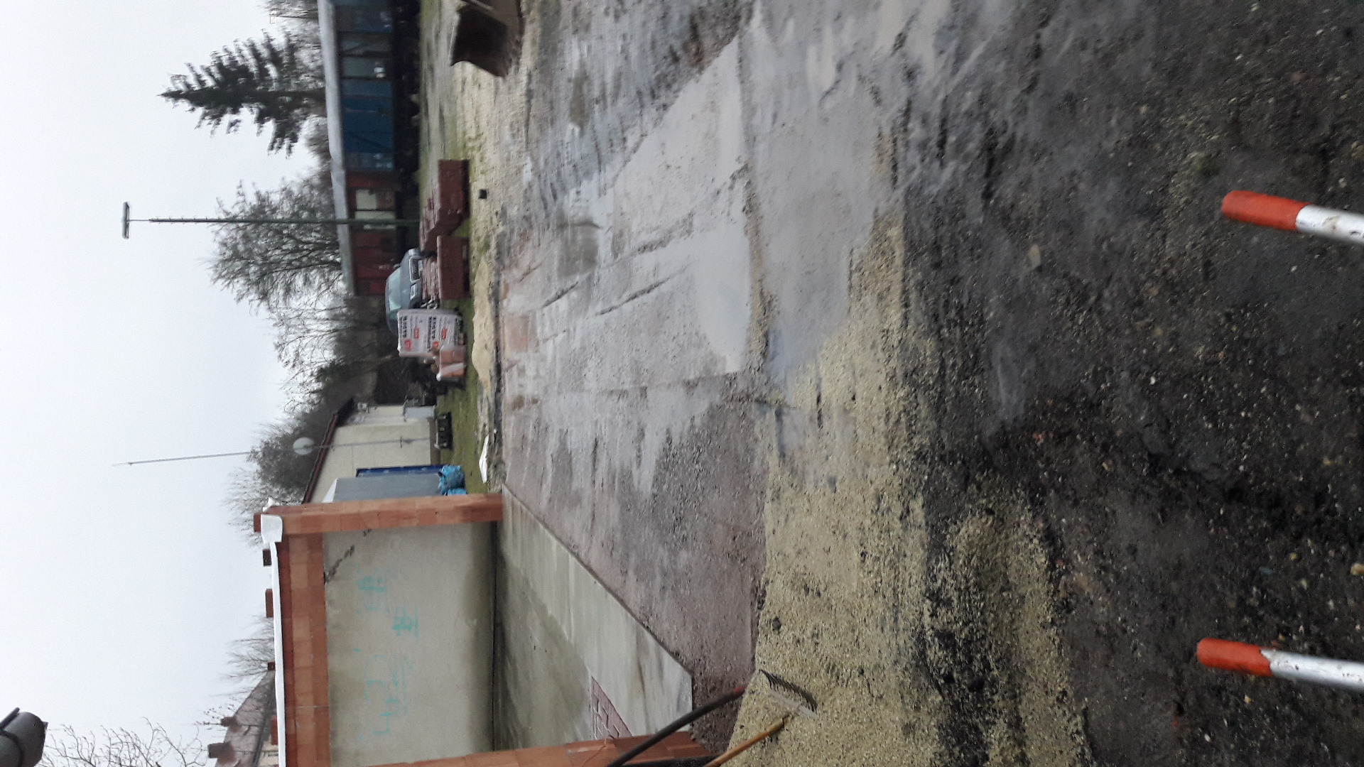 Nachdem die Fahrzeughalle nun also einen Dachstuhl bekommen hatte, mussten wir nochmals mauern. Da wir nach der Montage der Dachpaneele nur noch mit viel Mühe den Giebel verschließen könnten, musste das davor passieren. Am gestrigen Samstag konnten wir das erledigen. Mit einem Zwei-Mann-Trupp auf der Hebebühne und einem weiteren Zwei-Mann-Trupp, der sich um die Versorgung kümmerte, konnten wir auch der Aussage des Ordnungsamtes gerecht werden. Solange auf dem Gelände immer nur zwei Personen direkt zusammen arbeiten, ist das in Ordnung. Während also mit der Hebebühne Stein um Stein aufgesetzt wurde, hat das “Bodenpersonal” die Ziegel, den Kleber und den Mauermörtel angeliefert. Zu kämpfen hatten wir mit dem Ausmauern der Firstpfette, da diese in das Mauerwerk hineinragte. Da wir allerdings eine Steinsäge von einem unserer Mitglieder ausleihen konnten, war es kein Problem, die Steine in die richtige Form zu bringen.