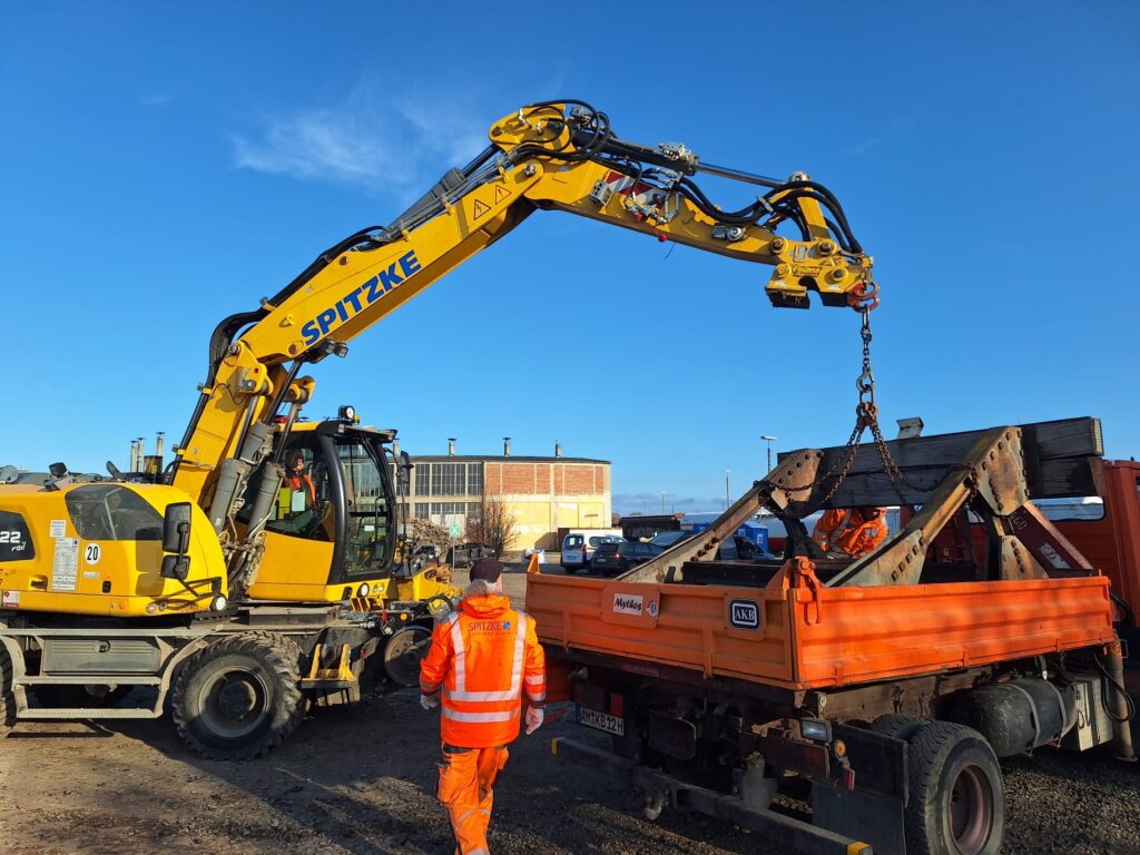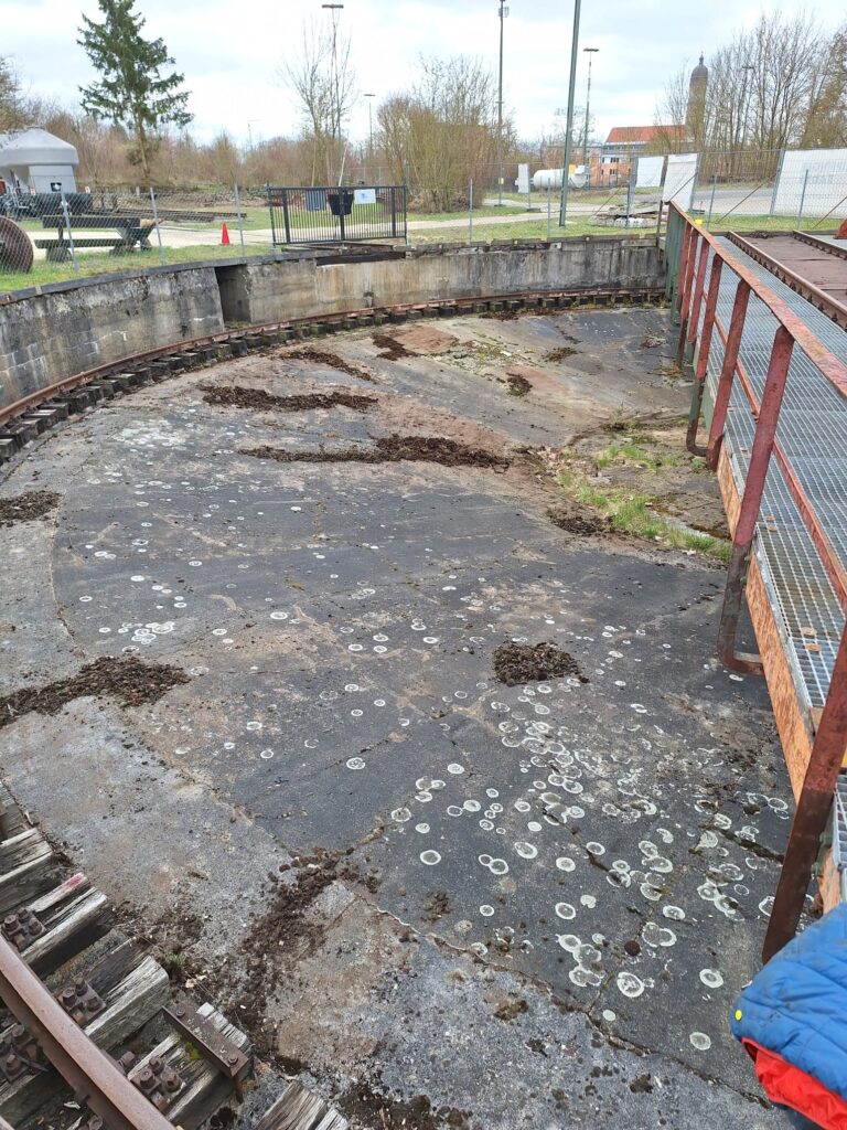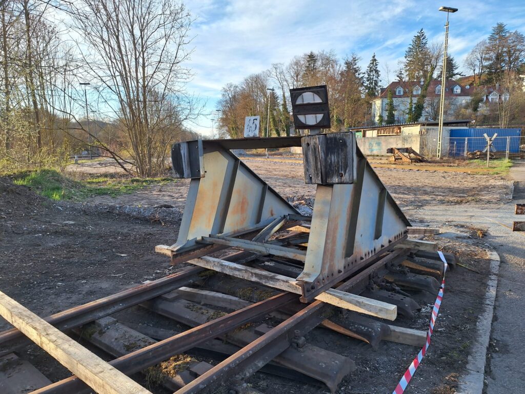Auch bei der Drehscheibe tut sich was. Hier wird momentan die Grube gereinigt und von Bewuchs befreit. Für die spätere Betriebsaufnahme, müssen hier ein paar Stellen ausgebessert werden. Auch die Holzschwellen welche die Drehscheibenbrücke tragen, werden ausgetauscht. Hierfür haben wir für einen nicht unerheblichen Betrag neue Holzschwellen im Schwellenwerk Schwandorf bestellt. Zeitgleich wurden bestehende Gleise vermessen und Messpunkte für die beiden Abstellgleise 42 und 43 angebracht, die wir wieder aufbauen wollen. Für die Abstellgleise konnten wir vor kurzem zwei Prellböcke aus Schwandorf bekommen. Hier wurden im Zuge der Gleissanierung ein paar davon ausgetauscht.